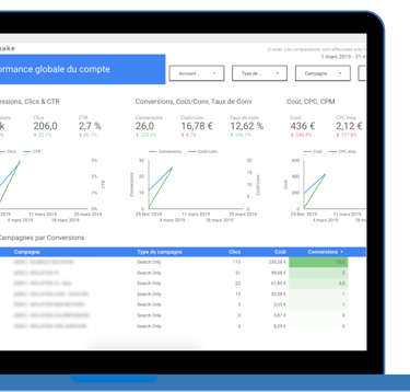 Nous regroupons vos données issues de vos campagnes, de votre site ou de vos outils internes dans un seul espace. Suivez vos performances, vos budgets et vos objectifs en temps réel